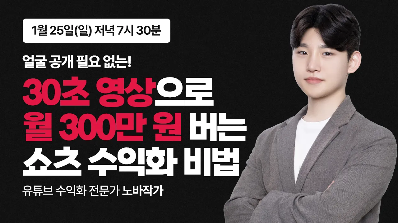 30초 영상으로 월 300만 원 버는 쇼츠 수익화 비법 무료 특강 [1월 25일]